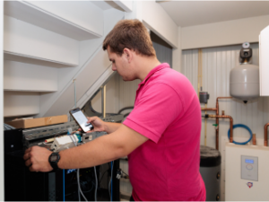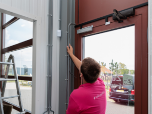 Naast een verkoelende airco in de werkplaats en winkel is ook de voordeur van een binnenkomst signaalgever voorzien. Wederom met veel werkplezier een mooi stukje installatiewerk mogen maken.
